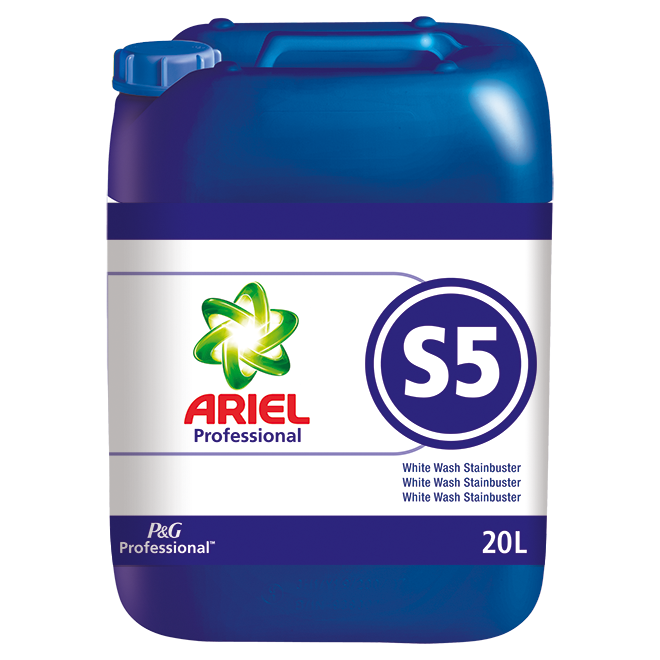 Tekuté pracie aditívum Ariel Professional S5 je určené na použitie so systémom Ariel 1 Wash. Toto aditívum je vyvinuté na odstraňovanie škvŕn z bielej bielizne a na jej dezinfekciu. Systém Ariel 1 Wash je s prostriedkom S5 účinný už od 30 °C a dezinfikuje od 40 °C. Ideálny na odstraňovanie škvŕn od kávy, čaju, vína a ovocia. Účinkuje pri teplotách do 60 °C. Antibakteriálny, likviduje 99,99 % baktérií podľa európskej normy EN 1276 (viac informácií nájdete v návode na použitie a v produktovom liste). Na dosiahnutie ideálnych výsledkov používajte spolu s prostriedkom Ariel S4 White Max. Môže sa používať na bielu bielizeň pri všetkých stupňoch tvrdosti vody. Odporúčame dávkovať do predpierky. Biocídne (dezinfekčné) prostriedky používajte zodpovedne podľa návodu na použitie.