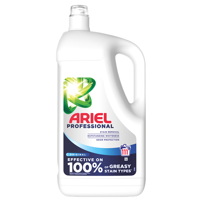 Tekutý prací gél Ariel Professional Original je navrhnutý špeciálne na profesionálne použitie. Výborne čistí a odstraňuje škvrny, ktoré sú typické pre profesionálne prevádzky. Spoľahlivo odstráni aj odolné škvrny už pri prvom praní a zároveň je k bielizni jemný a šetrný. Na rozdiel od iných pracích prostriedkov začne pôsobiť priamo počas prania a prirodzene tak preniká do hĺbky vlákien. Špeciálne enzýmy chránia a zjemňujú bavlnené vlákna aj iné druhy tkanín. Udržiava bielizeň žiarivo bielu aj po viacerých praniach a zanecháva ju čistú, sviežu a jemne prevoňanú. Účinný už pri teplote 30 °C.