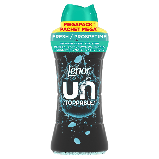 Vonné perličky Lenor Fresh Unstoppables prinášajú novú definíciu dlhotrvajúcej vône a úplne nový zážitok dlhodobej sviežosti. Nezáleží totiž len na tom, ako vaša bielizeň vonia, keď ju vešiate alebo sušíte. Dôležité je aj to, či príjemne vonia pri žehlení, ukladaní do skrine aj počas nosenia. Perličky Lenor Fresh Unstoppables boli vyvinuté pre intenzívnu a dlhotrvajúcu vôňu bielizne, ktorá vydrží oveľa dlhšie, než ste boli doteraz zvyknutí. Pridávajú sa priamo do prania a sú vhodné na všetko aktívne nosené oblečenie, pri ktorom svieža vôňa rýchlo vyprchá. Výborne sa hodia napríklad na športové oblečenie, uteráky alebo posteľnú bielizeň.