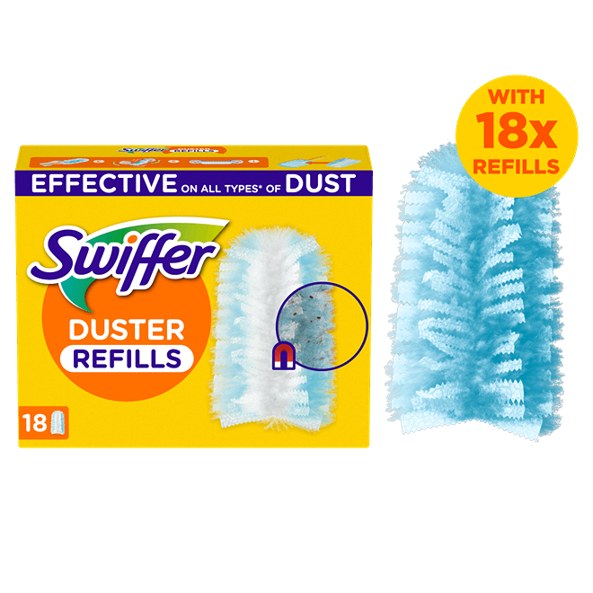 Sada náhradných prachoviek Swiffer je určená na suché upratovanie domácnosti. Používa sa s násadou Swiffer na zachytávanie prachu, vlasov a alergénov z roztočov, ako aj mačacích a psích chlpov z povrchov, pomocou tisícov jemných povrchovo upravených vlákien. Prachovka je vyrobená z jedinečných vlákien, ktoré sa tvarovo prispôsobujú zákutiam a štrbinám, kam prenikajú a zbavujú tak všetky povrchy od prachu, vlasov a chlpov bez vírenia prachu a nečistôt. Vhodné aj na ťažšie dostupné miesta (napr. radiátory).