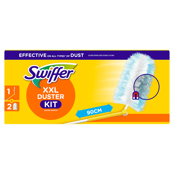 Prachovky Swiffer sú vďaka tisícom nadýchaných vlákien, ktoré zachytávajú prach, nečistoty a chlpy na akomkoľvek povrchu ako magnet. Sú účinným nástrojom na všetky typy prachu vrátane roztočov a alergénov, bez toho aby ich rozptyľovali do okolia. Sada obsahuje teleskopickú násadu XXL, ktorá je vhodná aj na upratovanie podláh alebo ťažko dostupných miest. Prachovku stačí znovu našuchoriť a môžete sa opäť pustiť do upratovania. Prachovky sú obzvlášť vhodné na zbieranie chlpov z neustále pĺznucich domácich miláčikov a pre osoby trpiace alergiou na prach. Náhradné prachovky Swiffer Duster sú kompatibilné s dlhou násadou XXL.